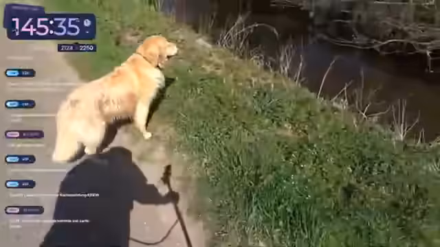 01:26:47Es wird überlegt, einen Termin für den 6. Mai bei der Hundephysiotherapeutin zu buchen, unter der Voraussetzung, dass es dem Hund bis dahin gut geht. Der Stream wird voraussichtlich bis nächste Woche, etwa den 11. oder 12. Mai, laufen. Die aktuelle Umgebung wird als sehr schön empfunden, wobei die vielen Zecken ein Problem darstellen. Ein normales Flugzeug vom Typ Boeing 737-800 von Rheinland, das von Malaga nach Karlsruhe fliegt, wird erwähnt. Der Hund wird gelobt und es wird überlegt, wie man ihn besser ins Wasser locken kann. Es wird festgestellt, dass viele Apfelbäume auf einer Wiese gefällt wurden, möglicherweise für ein Osterfeuer. Die korrekte Bezeichnung dafür ist 'abgerodet'. Der Hund nutzt jede Gelegenheit, ins Wasser zu gehen. Es wird eine schönere Stelle zum Baden erwähnt, die aber aufgrund der vielen Zecken gemieden wird. Die Sonne wird als angenehm empfunden. Der Hund wird als nass und stinkend beschrieben. Es wird überlegt, ob es ausreicht, den Hund nur abzutrocknen.