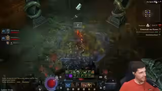 02:58:08Nach dem erfolgreichen Gambling wechselt der Stream zu Diablo 4, um für das kommende Event Köpfe zu farmen. Es wird ein ehrgeiziges Ziel verfolgt, in einer knappen Zeit die meisten Altäre abzuschließen. Während der Farm-Session wird die Gruppenzusammenstellung optimiert und kritisiert, dass der Damage in der aktuellen Konfiguration zu gering ist. Das Team kämpft darum, die Tribute innerhalb der Zeit zu bewältigen, wobei es knapp scheitert, aber einige der schwierigen Bosskämpfe trotzdem meistert.