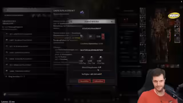 03:43:23Es wird ein Battle Pass unter den Followern verlost, die zusätzlich "BB 01" in den Chat schreiben. Der Gewinner erhält einen 20 Euro Battle Net Gutschein, um sich zwei Battle Passes zu kaufen. Die Ziehung findet vor dem Kaffeetalk statt. Danach geht es um die Herstellung eines okkulten Gems. Es werden die benötigten Materialien wie Smaragde und Schädelfragmente analysiert. Es stellt sich heraus, dass große Mengen an Smaragden und Schädelfragmenten fehlen, was bedeutet, dass diese noch gefarmt werden müssen. Für die Herstellung des Staubsteins wird die hungrige Leere benötigt, wofür wiederum 75.000 Schädelfragmente fehlen. Das Farmen von Edelsteinen wird als notwendig erachtet, da der Umtauschkurs schlecht ist.