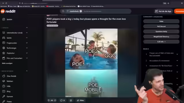 00:23:32Die Ankündigung der unbestimmten Verschiebung der nächsten Path of Exile 1-Liga löste eine massive Reaktion in der Community aus. Der Streamer zitiert den Entwickler Jonathan, der das Verschieben mit dem Abzug von Ressourcen für Path of Exile 2 begründet, entgegen vorheriger Aussagen, dass dies keinen Einfluss hätte. Das Reddit-Forum explodierte und wurde zu einem Meme-Hub, was den Streamer als unterhaltsam, aber für die PoE1-Spieler frustrierend beschreibt.