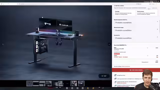 00:50:04Ein MSI Giveaway ist bereits angelegt, bei dem Monitore gewonnen werden können. Das Event startet nächste Woche und wird eine Mischung aus Remote- und Vor-Ort-Veranstaltungen sein. Das Team wird ab dem 9. vor Ort sein, und es wird einen Terminkalender geben, da der Zeitraum länger als ursprünglich geplant ist. Das Giveaway ist auf Deutschland und Österreich beschränkt, da der Versand in die Schweiz zu teuer wäre. Die Teilnahmebedingungen sind detailliert aufgeführt. Das Event soll ungefähr zwei Drittel des Dezembers abdecken, mit einem Ende am 22. Dezember, um Weihnachten mit der Familie zu verbringen. Es gibt auch einen Hinweis auf einen Black Friday Sale von Secretlab, der noch einige Tage läuft. Es gibt Kombi-Angebote für Stühle, Tische und Zubehör mit erheblichen Rabatten. Der Versand ist in Deutschland, Österreich und der Schweiz kostenlos. Rabatte von bis zu 100 Euro auf Titan Evo Stühle und weitere Rabatte bei größeren Bestellungen (ab 850 Euro oder 1500 Euro) sind verfügbar. Der Secretlab Magnus Pro Schreibtisch wird als '10 von 10' bewertet, insbesondere wegen des Kabelmanagements und der Möglichkeit, den PC-Tower unter dem Tisch zu befestigen. Es gibt verschiedene Größen und Designs für die Stühle, wobei Stoffbezüge als angenehmer empfunden werden als Kunstleder. Die individuelle Größenbestellung der Stühle ist wichtig für den Komfort. Das Team hat den Schreibtisch in zwei Stunden zusammengebaut, was die einfache Montage unterstreicht. Es wird darauf hingewiesen, dass es kein Echtleder für die Stühle gibt. Ein Problem mit knackenden Platten bei Schreibtischen wird erwähnt, aber als Einzelfall abgetan.