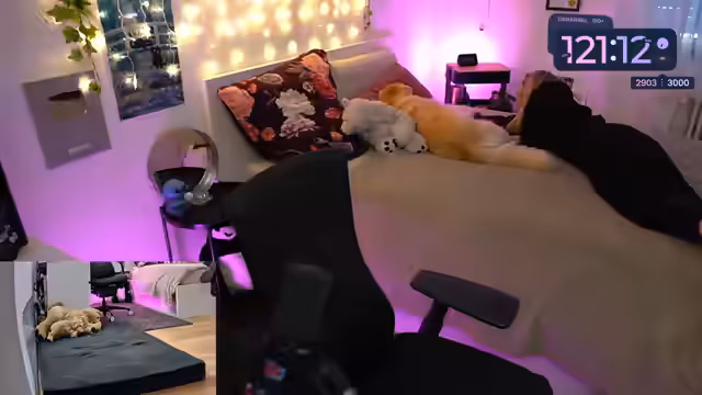09:43:20Das Spiel wird unterbrochen, da die Streamerin ihre Nudeln abgießen muss. Dieser real-life Moment kurzfristig den Stream aus dem Gaming-Kontext reißt. Nach der kurzen Pause kehrt sie zurück ins Spiel, während sie gleichzeitig mit dem Chat über privates wie das Kochen von Nudeln spricht. Der Übergang ist fließend zwischen Realität und Spielwelt.