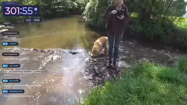 00:11:45Der Stream folgt Holly und der Streamerin auf ihrem Spaziergang. Sie tauchen in die Natur ein, begegnen verschiedenen Tieren wie Pferden und Schmetterlingen, und diskutieren über die Vorzüge von Outdoor-Aktivitäten. Die Streamerin erwähnt technische Probleme mit dem Internet, während Holly die Freiheit genießt und verschiedene Aktivitäten wie Schwimmen im Wasser ausprobiert.