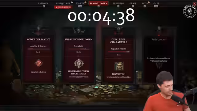 01:52:00Ein zentraler Punkt war das neue Loot-System, das durch das 'Gefängnis-Event' (Belial-Überfall) gekennzeichnet ist. Um an den Loot zu gelangen, muss nach dem Boss-Kill eine Kiste mit Herz-Materialien aufgewendet werden. Das Streamer-Team konnte erfolgreich einen Überfall auslösen und ein legendäres, Greater-Affix-Item looten. Die Wahrscheinlichkeit des Überfalls wird durch Season-Quests, Alchemisten-Elixire und das Einsetzen von Asche erhöht.