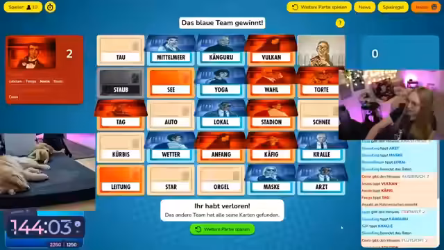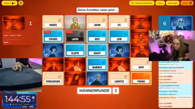 12:46:49Die Teilnehmer reflektieren über ihre Spielstrategie und die Teamdynamik während des Codenames-Spiels. Es wird über die Schwierigkeiten gesprochen, gemeinsam zu denken und aufeinander zu hören, während man gleichzeitig verhindern muss, die Wörter des gegnerischen Teams aufzudecken. Die Energie im Stream bleibt trotz der mentalen Anstrengung hoch.