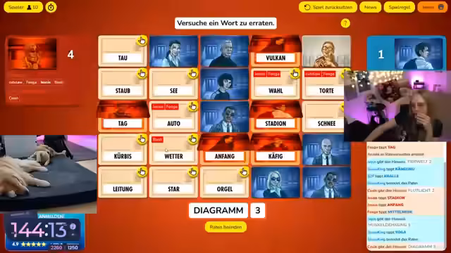 10:38:20Streamer initiierte eine Runde Codenames mit Zuschauern, was hohen Andrang hatte. Die Regeln wurden erklärt: Teams müssen Wörter gemeinsam raten, während der 'Geheimdienstchef' Hinweise gibt. Streamer moderierte das Spiel energisch, teilweise mit technischen Problemen. Die Interaktion zwischen Streamer und Community war intensiv, mit Humor und strategischen Diskussionen.
