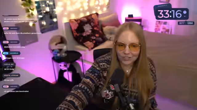 00:24:10Die Streamerin geht auf verschiedene Fragen und Kommentare aus dem Chat ein, darunter persönliche Themen wie Körpergröße, Beziehungen und Erfahrungen mit Reality-TV. Sie spricht über Herausforderungen als Streamerin, insbesondere den Verlust von Privatsphäre und die Erwartungen der Zuschauer, sie auch im realen Leben zu treffen. Auch unerwünschte Kontaktaufnahmen via Social Media werden angesprochen und kritisch bewertet.