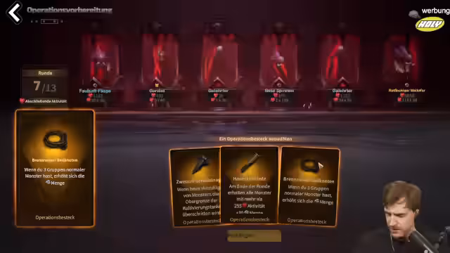 00:09:50Der Streamer spielt 'Torchlight Infinite' und erklärt die aktuelle Season mit den Monster-Mutations-Regeln. Es geht um das Erstellen von eigenen Monstergruppen, wo durch die Auswahl von Gruppen und Mutationen (z.B. in Parasitenwürmer) die Schwierigkeit und der Loot-Ausstoß erhöht werden. Besonders wichtig ist die Anzahl der Gruppen: Ab zwei Gruppen erhält man pro Runde zufällig eine zusätzliche Gruppe. Das Ziel ist es, die Aktivitäten hochzuziehen, um bessere Belohnungen in Lilas und Diamantfarben zu erhalten, was hohe DPS-Werte erfordert (von 11 Millionen nach einem Item-Tausch).