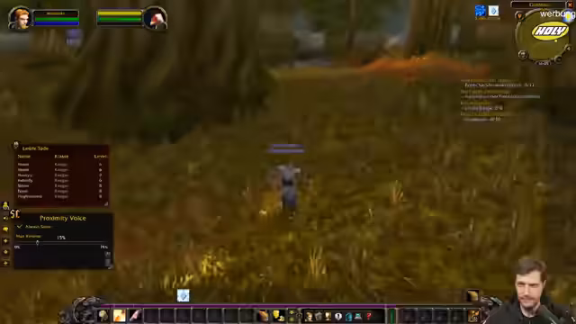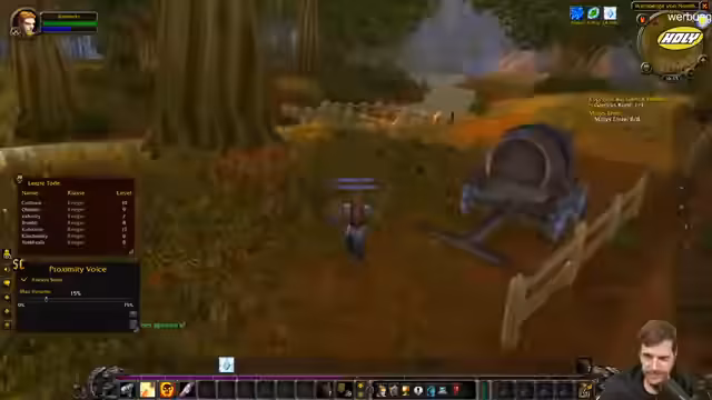 01:59:20Innerhalb der WoW-Gruppe entsteht Chaos durch parallele Kommunikation, das gezielte Absprechen von Aufgaben wird als Herausforderung beschrieben. Die Koordination von Buffs, Heilung und Mob-Pulls erfordert Abstimmung, da die Klassenzusammensetzung (Priester, Krieger) und das frühe Leveln in Startgebieten die Dynamik beeinflussen. Der Fokus liegt auf dem sicheren Erledigen von Quests und dem Vermeiden von übermäßigem Risiko.
