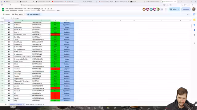 04:30:00Im Rahmen der Doppel-Challenge (WoW + Diablo) werden die Gewinner gezogen. Für Path of Exile (PoE) gewinnen Natsuki, Diabolischer Löwe und Tada! Für die Diablo-4-Challenge werden Papa Payne (Platz 1), Rudo (Platz 2), Gekko (Platz 3) sowie Ernfried, Lars, Ursus und Mike als weitere Gewinner genannt. Die Preise werden als Steam- oder Battle.net-Guthaben ausgezahlt, wobei PoE-Gewinner Steam erhalten. Diskutiert wird auch die enorme Teilnehmerzahl (über 300) und die Schwierigkeit, manuell Leaderboard-Daten zu sammeln.