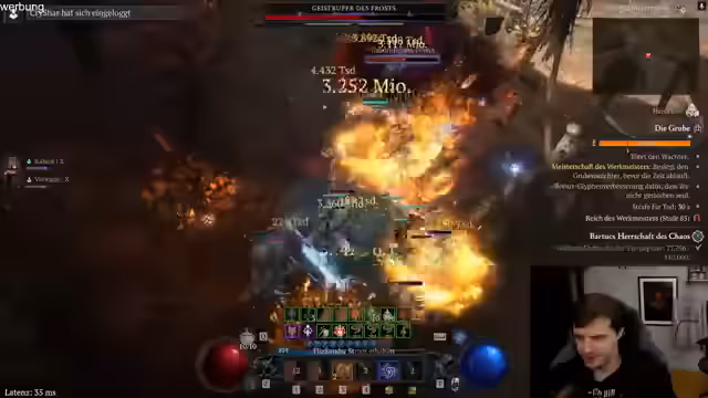 02:21:25Der Streamer beschreibt den aktuellen Zustand des Streams, in dem er versucht, eine hohe Pit-Level für die Diablo-Hardcore-Challenge zu erreichen. Die Performance im Spiel ist durch hohe Latenzprobleme beeinträchtigt, was das Vorankommen erschwert. Nach einigen Bemühungen und Rückschlägen, wie dem Verlust von Items durch Lag, gelingt es ihm, eine Pit-Level 90 zu erreichen. Das Ziel ist, genug Menschen aus der Challenge-Hitliste zu verdrängen. Er stellt fest, dass die Konkurrenz sehr hoch ist, da bereits Spieler wie Jasool mit einer Level-100 und der aktuelle Spitzenreiter Kaiser mit Level-130 eingereicht haben.
