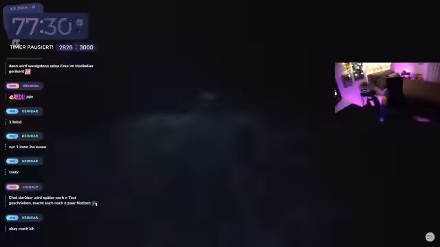 11:30:23Nach mehreren Stunden Zocken hat die Streamerin einen ersten Erfolg in der Challenge erzielt und beschließt, eine Pause einzulegen. Sie geht in die Küche, um sich etwas zu essen zu zubereiten und den Stream kurz zu unterbrechen, um Kraft zu tanken und sich für die nächste Kategorie zu rüsten.