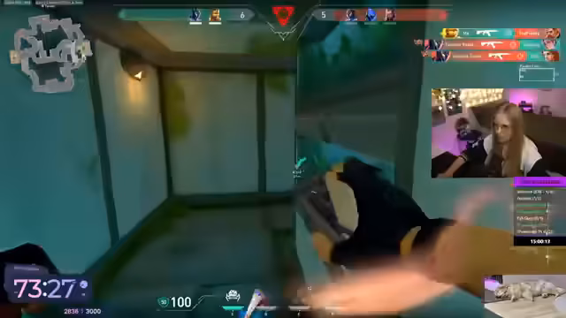 14:02:38Der Stream wechselt abrupt zum Spiel Valorant. Die Streamerin und ihr Team planen einen aggressive Spielzug auf Punkt B. Die Kommunikation ist wichtig, um Positionen und Taktiken wie Smokes abzustimmen. Sie analysiert die gegnerischen Züge, beschreibt kritische Momente und äußert Frustration über verpasste Gelegenheiten. Das Gameplay erfordert vollen Fokus, schnelle Reflexe und ein klares Teamwork, um den Gegner zu überwinden und den Rundengewinn zu sichern.