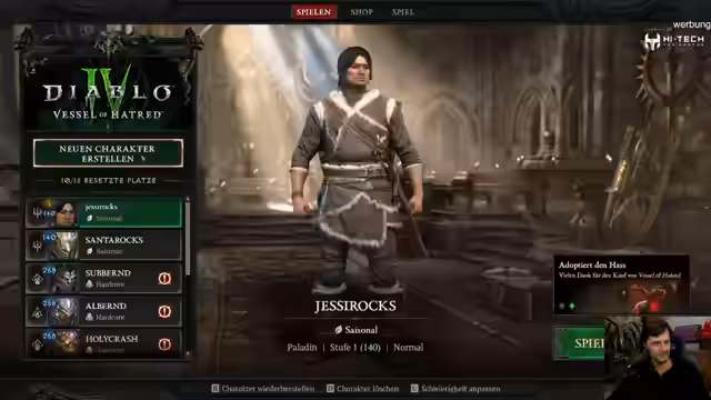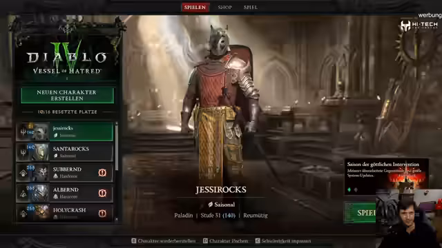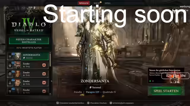 12:40:11Der Kooperationsstream mit GameStar beginnt offiziell. Es wird die Ankündigung des Diablo 4 Add-ons 'Lord of Hatred' thematisiert, das am 28. April erscheint, sowie die neue Paladin-Klasse, die bereits jetzt in Season 11 spielbar ist. Die Teilnehmer Lea und Jesse Rocks schalten sich zu und diskutieren ihre Vorfreude auf den Paladin, der an klassische Diablo 2-Vibes erinnert. Gemeinsam planen sie, neue Charaktere zu erstellen und das Gameplay der neuen Klasse während einer Stunde zu erkunden.