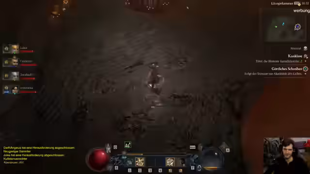 13:39:57Im Helltide-Modus kämpft die Gruppe gegen überwältigende Monsterwellen, wobei mehrere Todesfälle durch unerwartete Schadensquellen und Mechaniken auftreten. Dies führt zu Diskussionen über die Balance des Schwierigkeitsgrads und die Effizienz des Farmens. Der Streamer reflektiert über die Bedeutung, die Story in Diablo nicht zu überspringen und kritisiert Schnellspiel-Methoden, die das Erlebnis ruinieren. Die Cinematics von Diablo werden besonders gelobt, besonders die Inarius-Cinematic aus dem Basisspiel.