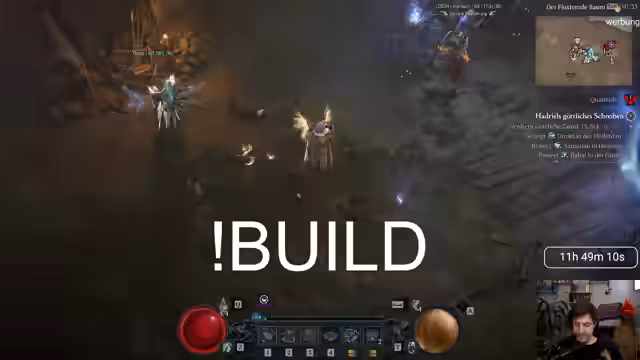 01:45:09Der Streamer stellt den 'Pensionisten-Baladin-Build' vor, einen Paladin-Build, der wenig Interaktion erfordert und daher ideal für nebenheriges Spielen ist. Er erklärt, dass dieser Build keine Tastendrücke benötigt und stattdessen auf Auto-Attacken und Auren setzt, was auch für andere Spieler wie 'Toonie' attraktiv ist. Die Fähigkeiten und Skillung werden detailliert besprochen, und der Build wird als maximal einfach, aber effektiv beschrieben, wobei der Streamer betont, dass er nicht meta-konform ist. Die Skillung wird hochgeladen, um sie für Zuschauer zugänglich zu machen, und es wird auf ein verlinktes Video verwiesen, das die Funktionsweise erklärt.