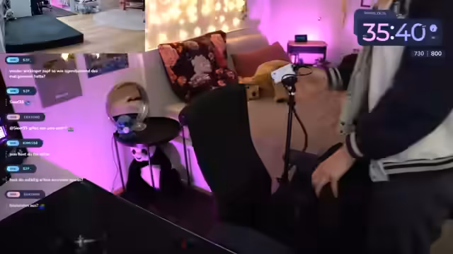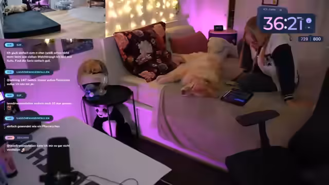 00:19:34Nach einer längeren Abwesenheit aufgrund eines technischen Defekts kehrte die Streamerin zurück zum Stream und nahm ihren Platz im Gaming-Bereich ein. Holly war sichtlich erleichtert und freute sich, wieder bei ihr zu sein. Es wurden Vorbereitungen für das weitere Streamen getroffen, darunter die Aktivierung von Alexa für eine Lichterkette und das Einrichten von Szenen in OBS. Dabei wurden die bestehenden technischen Probleme am Streaming-PC thematisiert, die das Erlebnis trübten.