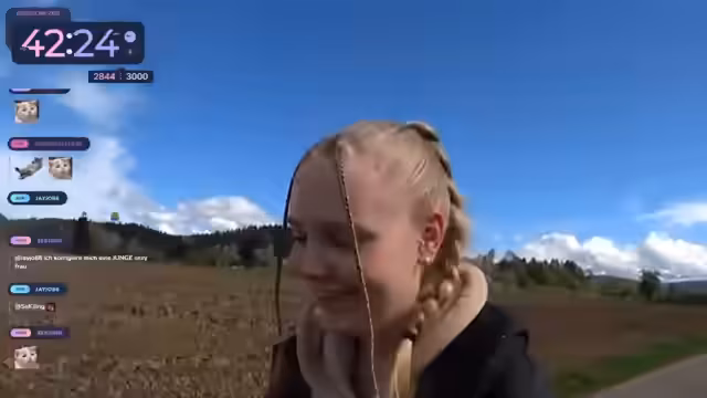 00:05:50Geplant war ein entspannter Gassi-Spaziergang mit dem Hund Holly, doch das Wetter schlägt um. Trotz eines positiven Wetterberichts beginnt es zu regnen. Die Streamerin bemüht sich, die Technik zu schützen, und versucht zunächst, den Spaziergang mit einem Regenschirm fortzusetzen, muss den Plan jedoch aufgrund des starken Regens und der Sorge um die Geräte abbrechen. Sie beschreibt die Situation als "kacke" und äußerst ärgerlich, da dies die ursprünglichen Pläne durchkreuzt.