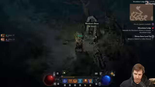 00:41:11Trotz der Probleme beginnt der Stream einen Hardcore-Charakter zu testen. Der Streamer stellt fest, dass der neue Charakter schwäker ist als gewohnt, da die üblichen Start-Skillpunkte durch das neue Season-Rank-System blockiert sind. Durch den Besuch eines Stronghold und das Töten von Monstern wird die XP schnell gesammelt, doch der Kampf gegen einen normalen Boss gestaltet sich bereits schwierig. Der Mangel an Skillpunkten und die generelle Zunahme des Schadens machen das frühe Spiel deutlich härter.