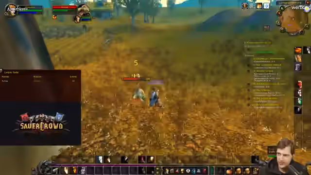 00:55:01Der Stream konzentriert sich darauf, gefährliche Gegner in Westfall zu jagen, insbesondere Erntehüter und einen seltenen Vogel, der einen Feldübergang blockiert. Es werden gefährliche Situationen mit Mob-Respawns und unerwarteten Aggro-Ranges geschildert. Die Streamerin betont die Wichtigkeit des Verbesserns des Heilerskills 'Verblassen', um unerwünschte Aggro zu kontrollieren, und riskiert dabei mehrfach ihr Leben.