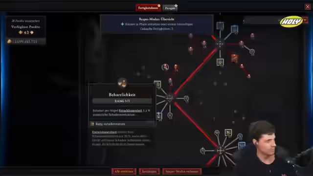 00:39:11Der Streamer kommentiert, dass es schade ist, dass das Paragon Board auf fünf Boards limitiert wurde, da dies seiner Meinung nach den Spielfluss beeinträchtigt. Er erwähnt, dass er kurzzeitig nicht wusste, wie das Board angehängt wird. Es wird erwähnt, dass im Hintergrund Straßenausbauarbeiten stattfinden, die für eine neue Zufahrt notwendig sind. Der Streamer hatte eigentlich darum gebeten, dass die Arbeiten um 16 Uhr beendet werden sollten, aber die Arbeiter sind motiviert und arbeiten weiter. Der Streamer erklärt, dass er die Board-Notes mitnehmen muss, vor allem solche, die Resistenzen oder Rüstung bringen, da Qual 4 mit dem Patch härter wird. Er überlegt, ob er die Thurials Macht nehmen soll, um komplett resi-fixt zu sein. Es wird betont, dass es wichtig ist, Dex Nodes mitzunehmen, da auf maximalen Grid gegangen wird.