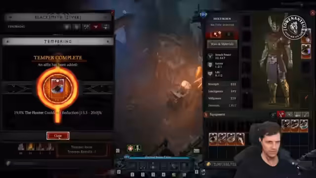 01:06:41Der Streamer stellt fest, dass ihm 800 Armor und Resistenzen fehlen. Er überlegt, woher die Resistenzen kommen sollen und stellt fest, dass er wenig Fire, Lightning und Shadow Resistenzen hat. Er versucht, die Items zu optimieren, um die fehlenden Werte auszugleichen. Es wird überlegt, ob All Resistenzen auf die Hose gerollt werden sollen. Der Streamer sieht sich ein bisschen entfernt, was die Resistenzen angeht. Er öffnet eine neue Kiste mit Items, um vielleicht bessere zu finden. Es wird überlegt, ob die Brustplatte komplett gefixt werden muss. Der Streamer stellt fest, dass er nur Päusenrisi gecappt hat, alles andere ist sehr weit weg. Er überlegt, ob er Young Blessings Schuhe nehmen soll, um das als Resifix zu nehmen, aber dann würde er Verosley Resolve verlieren. Es wird ein neuer Versuch mit dem Tampern gestartet, um Crit und Crushing Hand Size zu bekommen.