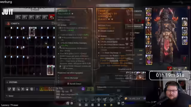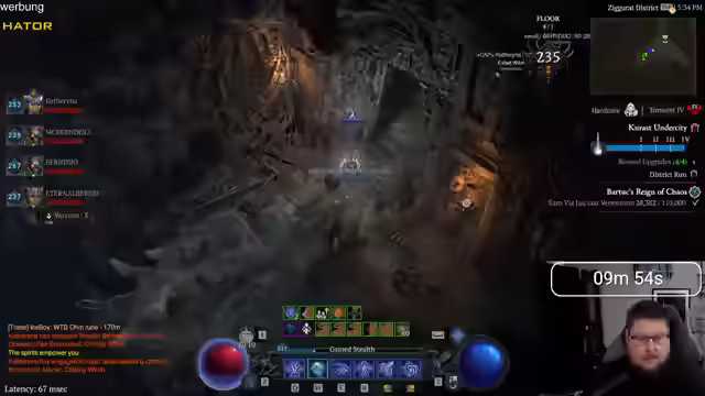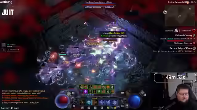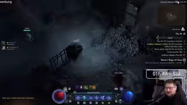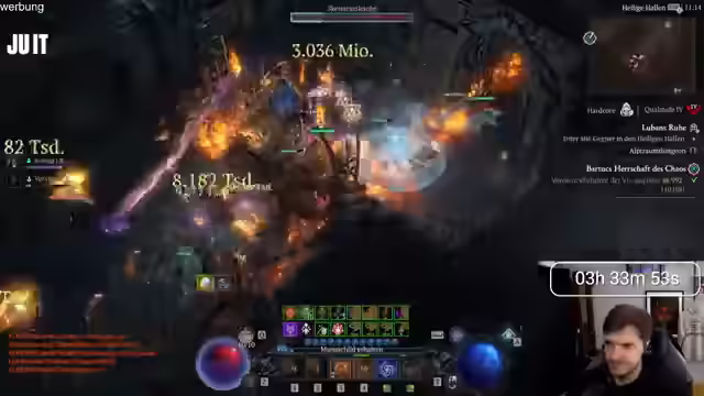 08:10:21Die Unterstadt wird als guter Ort zum Farmen von Runen, Bossmaterialien und Tributen hervorgehoben, wobei Tribute die Chance haben, mythische Items zu droppen. Es wird empfohlen, Infernal Horde Spartuk auszuwählen, wenn man auf der Suche nach Chaos-Armor ist, da dieser ab Tier 3 eine garantierte Chaos-Armor droppt. Tribute erhält man beim Spielen verschiedener Inhalte, wobei jene mit der Chance auf legendäre Items meist bei Weltbossen oder aus den Kisten vom Flüsterbaum zu finden sind. Verlorene Seelen sind jedoch Mangelware, was ein bekanntes Problem ist, besonders wenn man viel baut und Aspekte umwandelt. Legion-Events oder die Hölle sind gute Orte, um Seelen zu farmen. Es wird auch kurz auf das Problem des Streamers eingegangen, keine Isadora-Hose zu finden, trotz intensiven Farmens.
