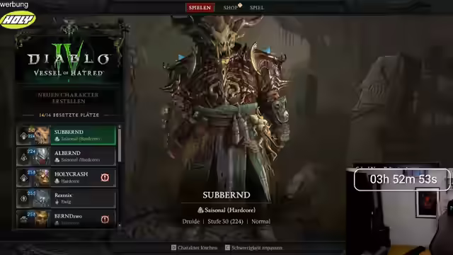 Ein unerwartet früher [game] Diablo IV-Stream auf jessirocks überrascht. Diskussionen über Streamdauer, eine Partnerschaftsankündigung und Dank an die Unterstützer prägen den Vormittag. Der Streamer trotzt Flugplänen, während der Chat über die Situation amüsiert ist. Operation Waldfee, eine Druiden-Challenge, wird gestartet, um mythische Items zu farmen und das Season Board freizuschalten. Es wird über Runen-Farming, Chaosportale und die Suche nach der perfekten Ausrüstung gesprochen.