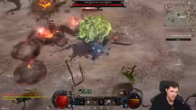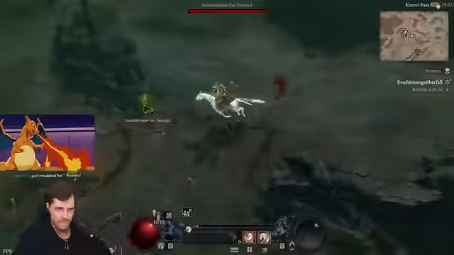 02:32:22Im LiveStream werden die Fertigkeiten des neuen Boss-Mechanik-Systems in Diablo 4 getestet. Nach dem Töten von Gegnern wird eine neue Fertigkeit namens Funke freigeschaltet, welche bei Anwendung eine kleine Druckwelle verursacht. Der Streamer erkundet die Open World, sucht nach Events und stellt fest, dass es neben den Bossen weitere Gegner zu töten gilt, um die Fertigkeiten zu erhalten. Es wird deutlich, dass dieses System aus dem Sammeln von Fertigkeiten und dem Besiegen von Bossen besteht.