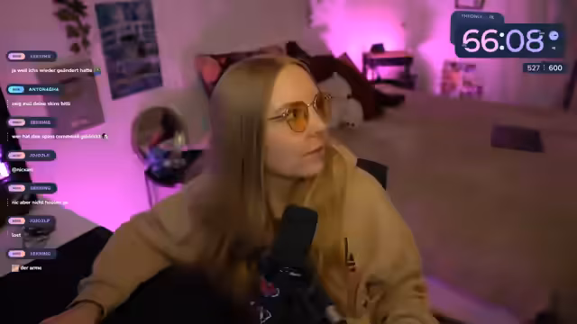 16:59:18Die Streamerin erklärt, dass ein Zuschauer aufgrund von 150 gegifteten Subs die Möglichkeit hat, für eineinhalb Stunden ein Spiel seiner Wahl auszusuchen, das vorher mit ihr und ihren Mods abgesprochen werden muss. Sie schlägt einfache Spiele wie VeloFortnite oder Warzone vor, aber auch etwas anderes wäre möglich. Der Zuschauer hatte sich diese Belohnung bereits gestern freigeschaltet. Es wird über die Playtime von Split Fiction gesprochen und dass es mit Nick wieder zu Hause gespielt wird. Ein anderer Zuschauer fragt, wie viele Subs es noch werden. Die Streamerin erklärt, dass sie das Spiel sowieso spielen werden, da es als Subgold-mäßig freigeschaltet wurde. Der Zuschauer kann sich mit dem Wünschen Zeit lassen, auch wenn es nicht im Summerton stattfinden muss, da er morgen in den Urlaub fliegt und drei Wochen nicht da ist. Die Streamerin erzählt, dass sie abends alle Bildschirme und Lichter ausmachen, wodurch man schnell vergisst, dass die Kamera läuft. Sie wünscht dem Zuschauer einen wunderschönen Urlaub und fragt, wohin es geht. Es wird überlegt, wie man aussehen würde, wenn man das andere Geschlecht wäre. Die Streamerin erwähnt ihren Zwillingsbruder und dass es für sie sehr unangenehm wäre, mit Cam zu schlafen. Sie zeigt die Sleep Cam und wo Holly überall in der Wohnung liegt. Der Stream läuft in jedem Raum und die Streamerin muss noch etwas für ihren Bruder bestellen.