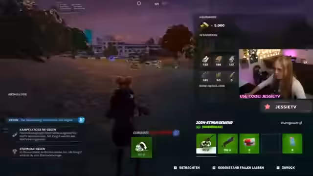 02:15:22Zu Beginn des Streamabschnitts wird eine neue Fortnite-Challenge vorgestellt: die Random Loader Challenge. Das Konzept verlangt, nach jedem eliminierten Gegner dessen Inventar komplett gegen das des eigenen zu tauschen und mit diesem die Runde zu gewinnen. JessieTV erklärt, dass sie sich dieses Challenge-Konzept zuvor selbst ausgedacht und es als „Random Loader Challenge“ benannt hat. Um den neuen Inhalt vorzubereiten, plant sie ein Intro-Video für YouTube und erwähnt, dass sie in Kürze umziehen wird, weshalb sie momentan vorproduziert. Das Intro wird anschließend erfolgreich als One-Taker-Aufnahme umgesetzt und vorgeführt.
