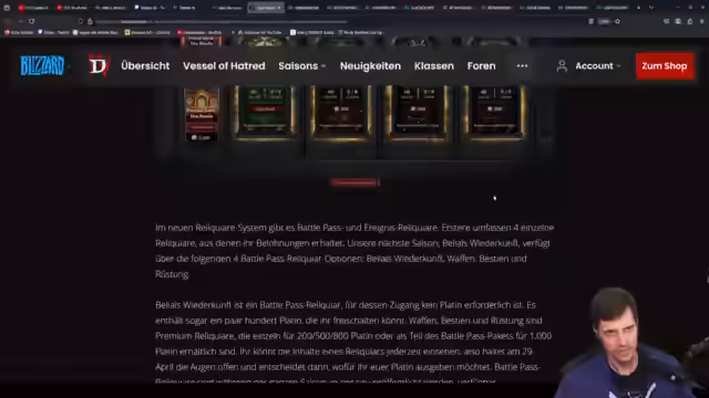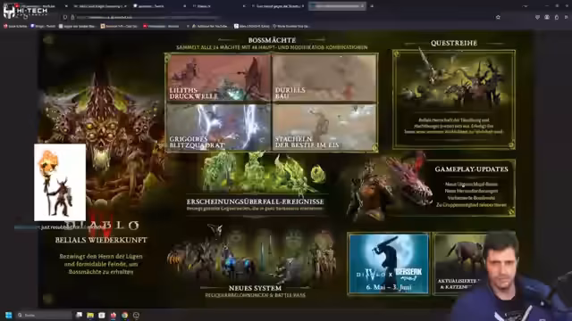 05:57:38Ein wachsendes Gefühl der Enttäuschung durchläuft die Community, da der Content-Umfang der Seasons als gering empfunden wird. Spieler fühlen sich kaum motiviert, über zwei Wochen zu spielen, da die neuen Mechaniken schnell durchgespielt sind und die Entwickler die Inhalte der Seasons auf Reskins von bekannten Systemen reduzieren. Es wird die Sorge geäußert, dass Diablo 4 gegen Spiele wie Path of Exile 2 oder Last Epoch nicht bestehen kann, wenn der Content nicht ansteigt.