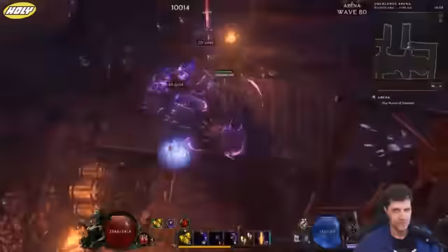 01:02:02Bei einem weiteren Versuch, die Arena-Welle 120 zu erreichen, erleidet die Streamerin einen überraschenden und unklaren Tod, verliert ihre gesamte Ausrüstung und muss von Neuem beginnen. Dennoch bleibt sie im Spiel und versucht, durch das Lösen von Prophecies und das Sammeln von Set-Items voranzukommen. Sie zeigt einen geglückten Set-Drop im 'Echo' und diskutiert strategische Aspekte wie den Corruption-Modus im Monolithen.