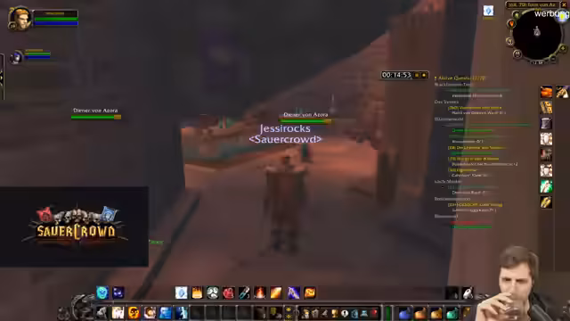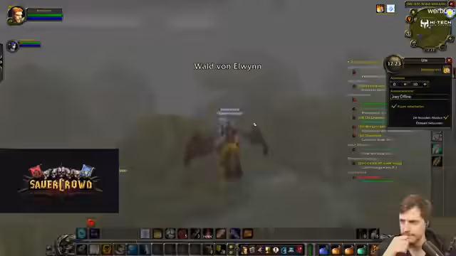 05:27:36Die Quests führen in ein Sumpfgebiet, das von einer hohen Dichte an Murlocs geprägt ist. Die Jagd auf diese wird als extrem riskant und 'quälisch' beschrieben, da sie oft zum Tod führen, besonders wenn man alleine ist. Die Kommunikation mit anderen Spielern wird durch ein spezielles Sauerkraut-Add-on behindert, was zu Konflikten führt, da Gruppen-Einladungen automatisch blockiert werden.