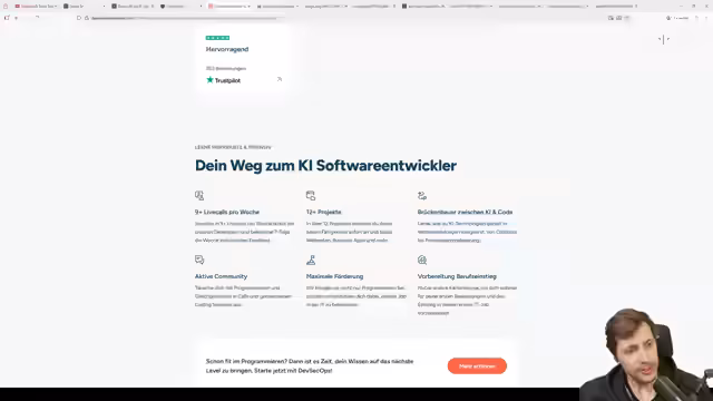 00:52:37Im Stream wird die Developer Academy vorgestellt, die sich an Personen richtet, die im IT-Bereich umschulen oder weiterbilden möchten. Das Angebot, das speziell für den deutschen Markt konzipiert ist, umfasst Frontend-, Backend-Entwicklung sowie KI-Integration. Ein umfassendes Informationsangebot, darunter ein Interview mit den Verantwortlichen am Freitag, 13. Februar, um 18 Uhr, wird angekündigt. Die Erfolgsquote von über 90% Vermittlung in neue Jobs wird hervorgehoben.