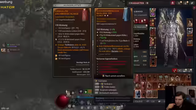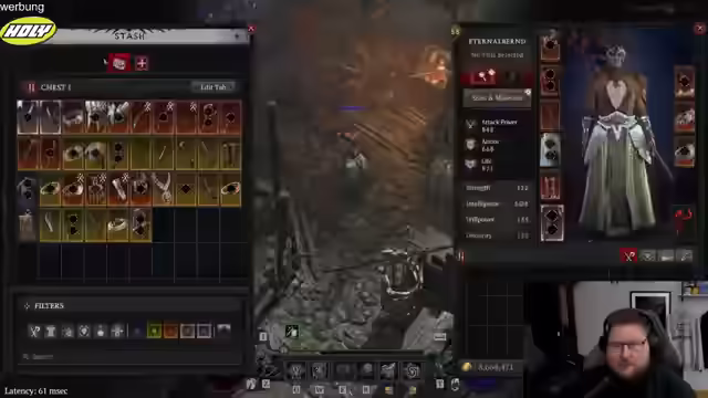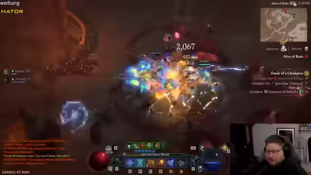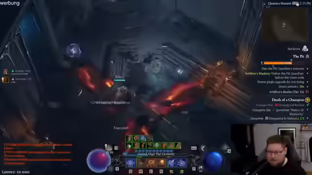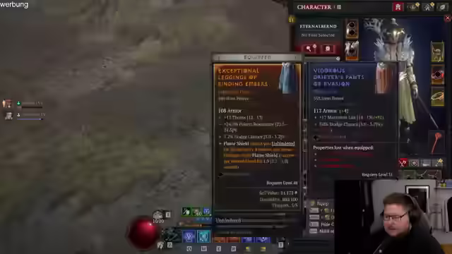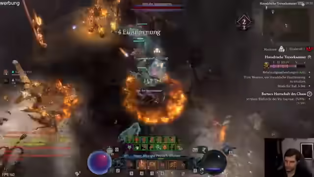 04:47:20Es wird auf T1 umgestellt, wobei Amor und Resistenzen ein Problem darstellen, das durch Tränke beeinflusst werden kann. Es wird wieder eine Zehner-Pit gelaufen. Ramen wurde gegessen, wobei Jesse die Küche dirigiert hat. Es wird überlegt, Dungeons zu laufen, wobei dem Frieden nicht getraut wird. Die Frage, ob Last Epoch schon wieder out ist, wird als Trollen abgetan. Runen werden am besten über die Under-City-Farmen oder beiläufig im Spiel gefunden und in legendäre Runen umgewandelt. Die neue Season macht bis jetzt einen guten Eindruck mit den Chaos Rifts, die anspruchsvoller sind als der Rest des Contents. Die Spannung auf die Chaos-Rüstung wird betont, die ab jetzt droppen kann. Punkte werden in den Enchanter investiert. Der Akku des Headsets muss gewechselt werden, aber es gibt Probleme damit. Nightmare Dungeons sollen noch gelaufen werden. Die Grafik von D4 wird mit PoE 2 verglichen, wobei beide Spiele als toll aussehend empfunden werden, aber unterschiedliche Stile haben. Es wird ein Dungeon in Nahantu gesucht, aber das direkte Anklicken zum Reingehen funktioniert immer noch nicht.