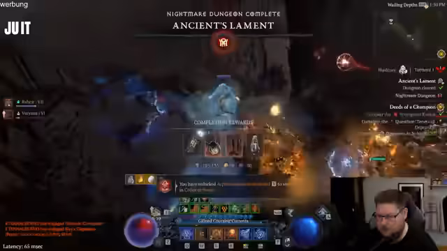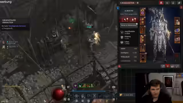 03:56:18Nach Erreichen von Level 60 konzentrierte sich der Stream auf das Paragon-Grinden und das Tempern von Ausrüstung, um die ersten Aspekte auf Items zu legen. Der Fokus lag darauf, genug Verteidigung und Schaden zu erhalten, um in die Nightmare Dungeons zu kommen. Es wurde ein Dungeon auf Stufe 7 probiert, um die Tauglichkeit für die Endgame-Phase zu testen, wobei der Umgang mit Tränken und Räucherwerk als Herausforderung identifiziert wurde.