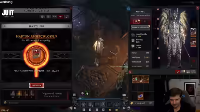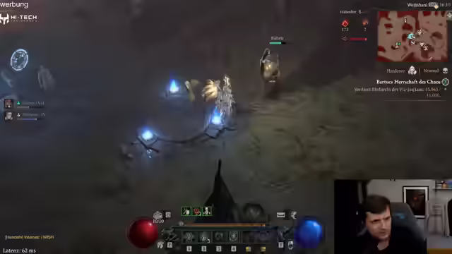 02:42:51Es wird über das Erreichen von Level 60 und das Sammeln von Backup-Gear diskutiert. Der Florian, der sich um die Technik kümmert, wird vorgestellt und seine früheren Koch-Streams werden erwähnt. Es wird angedeutet, dass es in Zukunft wieder Koch-Streams geben könnte, wenn die Zuschauer dies wünschen. Der Florian äußert sich zu Spielen aus der ISO-Ansicht und seiner fehlenden Bindung zu Charakteren in solchen Spielen. Er verabschiedet sich und wünscht viel Erfolg im Stream. Es wird über Glasfaserleitungen und ab welcher Stufe Chaos-Items droppen gesprochen. Zuschauer geben an, dass T1 normal droppen kann. Der Streamer möchte Strongholds mitnehmen, um Level 60 zu erreichen und mit Paragon Grinden zu beginnen. Aris wird geraidet und für den Raid gedankt. Es wird gefragt, welche Klasse er spielt und ob er an der Hardcore-Challenge teilnimmt. Aris spielt Softcore. Es wird über Sound- und Video-Lags im Stream diskutiert, die auf Probleme mit dem lokalen Netzwerk zurückzuführen sind. Die Latenz wird überprüft und für gut befunden. Ein Zuschauer fragt, wie man die Latenz sehen kann (STRG+R). Diablo 4 läuft auf Konsolen sehr gut. Es wird über Maxroll-Builds und Wowhead gesprochen. Ein Stronghold wird abgeschlossen und der nächste wird anvisiert.