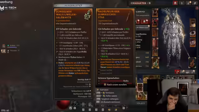 08:11:20Nach Erreichen des Maximallevels konzentrierte sich der Stream auf das Ausrüsten für den Ein ins Qual 1. Die Strategie war es, vorhandene Items aufzuwerten, Gold zu verbrauchen und Widerstände zu maximieren. Die Charaktere wurden um Attribute wie Rüstung, Leben und Widerstand ergänzt. Die Beschwörung der Hydra und die Verbesserung ihres Schadens standen im Vordergrund. Es wurde ein kurzer Farmdurchlauf unternommen, um Ressourcen zu sammeln und die vorbereitete Ausrüstung zu nutzen. Die Herausforderung, den Rüstungs- und Resistenzen-Cap zu erreichen, wurde angesprochen.