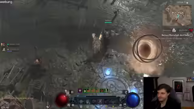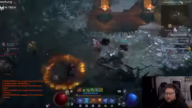 01:27:18Es wird erklärt, warum auf Englisch gespielt wird – weil Diablo 4 von Anfang an nur auf Englisch verfügbar war und man sich an die Sprache gewöhnt hat. Das Thema Kanalpunkte wird angesprochen und versprochen, sich darum zu kümmern, sobald der Streamer zurück ist. Es wird ein Chaos Rift in einem Dungeon erfolgreich abgeschlossen. Die Häufigkeit von Chaos Rifts in Dungeons wird diskutiert, wobei festgestellt wird, dass es circa fünf in jedem Dungeon mit dem entsprechenden Affix gibt. Es wird erwähnt, dass einige Chaos Rifts garantiert ein Mythic Item geben können. Es wird vermutet, dass der Hellborn wegen des Chaos Rifts spawnt.