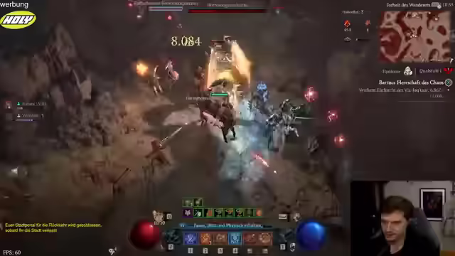 06:43:11Der Streamer begrüßt die Zuschauer zu einem Mittwochnachmittag-Livestream und kündigt an, dass der Charakter kurz vor Level 60 steht. Es wird die Stabilität der Technik hervorgehoben. Blizzard hat Battle Passes zur Verfügung gestellt, die verlost werden. Der Streamer äußert seine Meinung, dass Follows erwünscht sind, um am Giveaway teilzunehmen. Es wird erwähnt, dass der Battle Pass wahrscheinlich für PC ist. Der Streamer plant, im Discord nachzusehen, ob es dort noch einen Login gibt. Es wird humorvoll angedeutet, dass die Wireless-Tastatur im unpassendsten Moment ausfallen könnte. Der Streamer fragt nach den Paragon-Leveln der Zuschauer und erwähnt, bereits eine Fluchtrolle gefunden zu haben, falls es zu schwierig wird. Es werden Pläne für Strongholds geschmiedet.