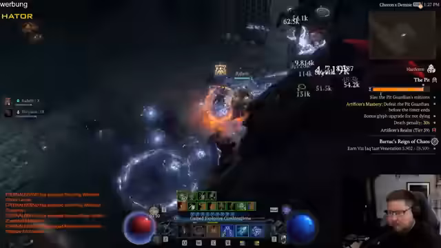 02:47:20Zu Beginn des Streams wird der schnelle Progress in der neuen Diablo 4 Saison angesprochen. Nach nur 40 Stunden werden bereits Pit 110er Gruben gelaufen, was für den Streamer unvorstellbar schnell ist. Er spekuliert, dass in dieser Saison jeder Klasse Pit 140er Gruben bewältigen wird und führt dies auf ein fehlendes Balancing zurück. Der Gameplay-Loop und der schnelle Fortschritt werden als beeindruckend, aber auch potenziell nicht gesund und nicht spaßig für das normale Spielen angesehen.
