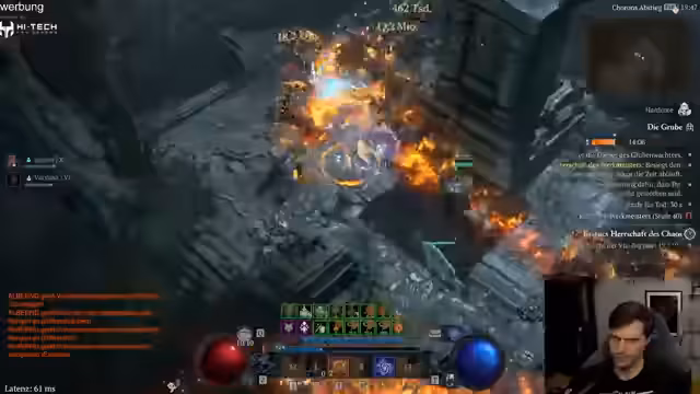 09:40:08Zu Beginn desChunks werden verschiedene Ausrüstungsgegenstände und Builds für das Spiel Diablo 4 analysiert. Der Fokus liegt auf der Verbesserung der Ausrüstung, wie der axialen Verbindung, der Suche nach der Halskette von Duriel und der Diskussion über den optimalen Schadensbuild. Der Streamer probiert verschiedene Gegenstände aus und bewertet ihre Effektivität, während er den Farmprozess in einer bestimmten Zone vorantreibt. Dabei wird auch auf technische Probleme, wie Ruckler auf Twitch, eingegangen und Lösungsansätze erörtert.