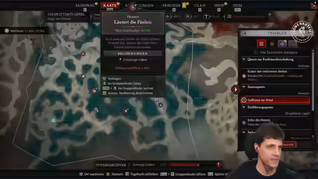 00:31:33Der Schwierigkeitsgrad skaliert auf das Season-Thema, wodurch Bounty Quests auf höheren Qualstufen mehr Gaben geben. Für das Season-Thema ist es wichtig, so hoch wie möglich zu spielen. Das Balancing beim Kopf-Farming ist unterschiedlich, je nachdem, ob man solo oder in einer Gruppe spielt. In Softcore oder Hardcore mit mehreren Spielern können Boss-Loops entstehen, wodurch man schneller Köpfe farmen kann. Es wird empfohlen, in Gebieten mit anderen Spielern zu bleiben und jede Wurzel anzuklicken, um von den Bossen zu profitieren. Der Streamer erklärt Achtung, jetzt kommt die wichtigste Information, die ihr bei Season 7 in Diablo 4 noch mitnehmen könnt. Der Schwierigkeitsgrad skaliert auf das Season-Thema. Das wusstet ihr vielleicht oder wusstet ihr auch nicht, aber das Season-Thema ist ja dieses Geflüster im Wald. Und hier sammelst du ja immer diese grausigen Gaben. Und je höher der Schwierigkeitsgrad ist, das ist ein Multiplayer auf die abgeschlossenen Quests, die du machst.