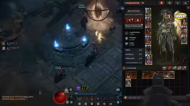 00:37:16Die fehlenden Hexenkräfte müssen zufällig über Altäre in Dungeons oder der Pit gefunden werden. Das Finden der Hexenkräfte erfolgt in einer linearen Reihenfolge: Zuerst Zirkel, dann Verhexung, dann Auraspezialisierung und zuletzt Piranado. Das Aufwerten der Fertigkeiten ist teuer, insbesondere die verstärkten Hexenkräfte. Nach dem Finden aller vier Hexenkräfte können weitere Altäre gefunden werden, um Spezialfertigkeiten zu erhöhen. Insgesamt müssen 69 Altäre gefunden werden, um alle Fertigkeiten aufzuwerten. Das Farmen im grünen Gebiet sollte nur in der Gruppe erfolgen, und das Altarfarmen immer mit dem jeweiligen Flask. Der Streamer erklärt, dass die Hexenkräfte sind vier davon, müssen zufällig gefunden werden. Dieser zufälliges Finden ist über den Altar, der in dem Dungeon ist oder in der Pit. Das kannst du beschleunigen, indem du ja den Trank nimmst. Ich denke mal, viele von euch, die fahren sowieso die ganze Zeit, Trank des Geflüsters, immer aktiv haben, erhöht die Chancen. Höhere Qualstufe erhöht die Chancen.