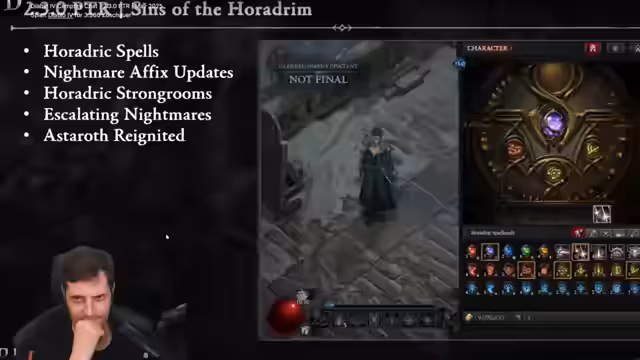 04:47:59Die Streamerin kommentiert die Präsentation der Season 9 Features. Sie zeigt sich überrascht über die Dungeon-Eskalation und die horadischen Mächte, die als neue permanente Ergänzungen vorgestellt werden. Sie ist skeptisch gegenüber der Umsetzung und befürchtet, dass die Spieler gezwungen werden könnten, mehr Dungeons zu spielen. Sie erwähnt auch die Wiedereinführung von Astaroth als Boss mit neuen Entwicklungen im Kampf.