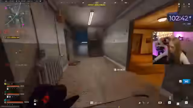 01:33:50Der Stream startet in die Mitte eines intensiven Gefechts. Spieler bewegen sich in einem Gebäude, Gegner werden von verschiedenen Seiten attackiert. Es kommt zu hitzigen Auseinandersetzungen, bei denen Gegner spawnen, aber auch schnell wieder eliminiert werden. Streamer kommentiert die schnellen Aktionen und die Unberechenbarkeit der Gegner, während er versuch, sich einen Vorteil zu verschaffen und die Gegner zu bekämpfen.