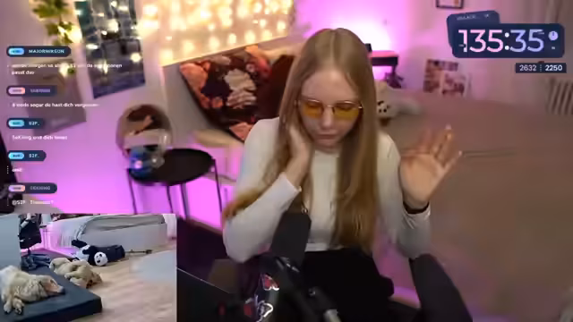 12:13:11Ein Raid von Mia wird dankend angenommen und die Zuschauer werden herzlich willkommen geheißen. Es wird auf die laufende Sabathon hingewiesen, die noch mindestens 135 Stunden dauern wird, wobei der Timer in der Nacht pausiert wird. Es wird erwähnt, dass der Akku kaputt gegangen ist, was die Mobilität in der Wohnung einschränkt. Es wird auf die Unordnung in der Küche hingewiesen, die der Chat möglicherweise sehen wird. Es wird erwähnt, dass bereits 36 Stunden auf den Timer hinzugekommen sind. Es wird bedauert, dass es keine Bilder oder Videos von Brownies gibt, die Mia gebacken hat. Die Person muss dringend auf die Toilette, kann sich aber nicht vom Stream losreißen. Es wird gescherzt, dass das Handshake-Emote nicht wie ein Handshake aussieht. Abschließend wird eine gute Nacht gewünscht und von einem Zungenkuss geträumt.