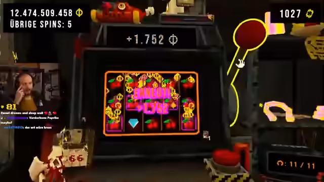 07:37:41Eine Phase der Gier und riskanter Spielzüge beginnt. Der Streamer ist auf der Suche nach dem seltenen Symbol „Baratun“, das verdoppelte Jackpots garantieren würde. Obwohl die 86%-ige Chance auf Kirschen bereits sehr hoch ist, wird eine Abstimmung gestartet, bei der sich die Chat-Community für einen riskanten, gierigen Spielzug entscheidet, der das Sicherheitsnetz des „Buchs“ opfert.