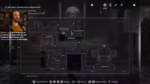 03:48:22Nachdem der Protagonist das Gefängnis verlassen hat, betritt er den Westflügel des Sanatoriums, der als Verwaltungstrakt dient. Er erkundet das relativ ruhige Gebiet und sammelt Gegenstände, darunter eine Zugangskarte für diesen Bereich. Er untersuchtdie verschiedenen Räumlichkeiten, von einer Küche bis zu Büros, und trifft dabei auf verschiedene Gegnertypen, wie einen Koch, den er umgehen oder bekämpfen muss.